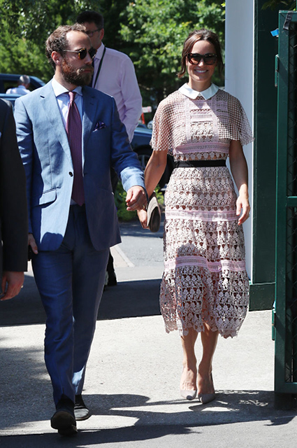Как отмечает портал, Пиппа Миддлтон была замечена папарацци на Уимблдонском теннисном турнире. Но стройную брюнетку сопровождал вовсе не новоиспеченный супруг Джеймс Мэттьюз, а родной брат. Однако пристальное внимание общественности Пиппа привлекла не только из-за этого обстоятельства. Для выхода в свет Миддлтон выбрала прозрачное кружевное платье. Несмотря на провокационный наряд, младшая сестра Кейт осталась скромницей - белье телесного цвета прикрыло все интимные подробности фигуры.