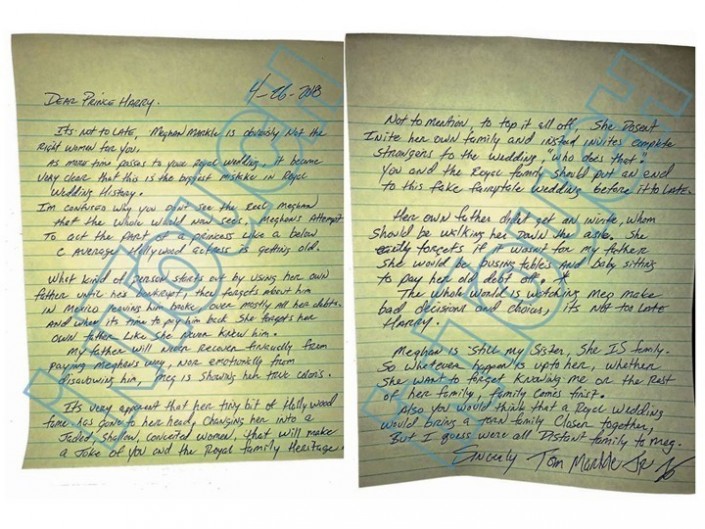 "Дорогой Гарри, еще не поздно, Меган Маркл - однозначно не является подходящей для тебя женщиной. Я озадачен, что ты не видишь настоящей Меган, какой ее уже видит весь мир", - написал он.