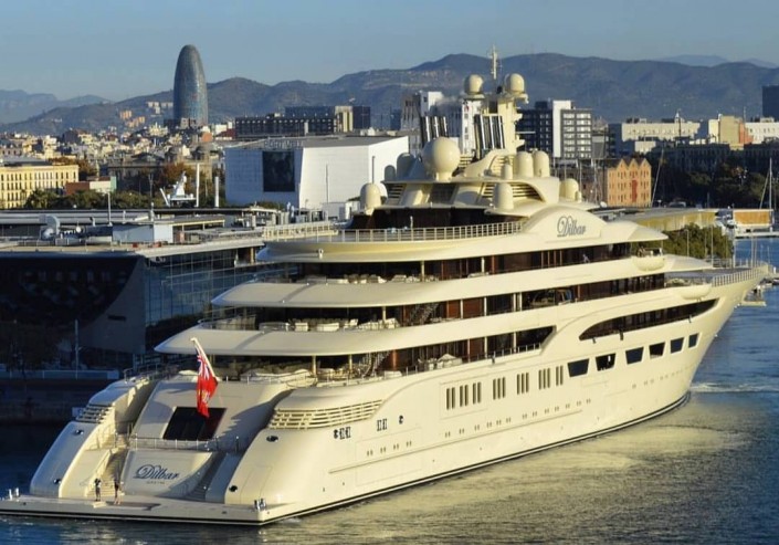 Цена "Дилбар" не разглашается, но эксперты оценивали ее приблизительно в 600 миллионов долларов. Она способна вместить до 120 человек, оснащена двумя вертолетными площадками, на ней несколько бассейнов, кинотеатр, спортзал, ресторан. Усманов приобрел яхту два года назад. Названа она в честь матери бизнесмена.