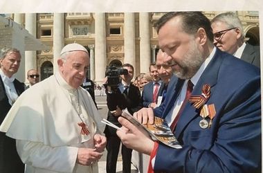 "Меня поставили в ложе для почетных гостей первым. Думаю, не случайно. Я сказал Папе, что скоро у нас великий праздник - День Победы, вручил ему памятную медаль к 70-летию Победы. Сказал, что наш народ заплатил за нее 26 миллионами душ, просил Папу быть вместе с нашим народом и в знак солидарности надеть георгиевскую ленту. Он сам ее надел на рясу, и беседа продолжилась. Папа через меня передал благословение нашей стране", - рассказала депутат РИА Новости