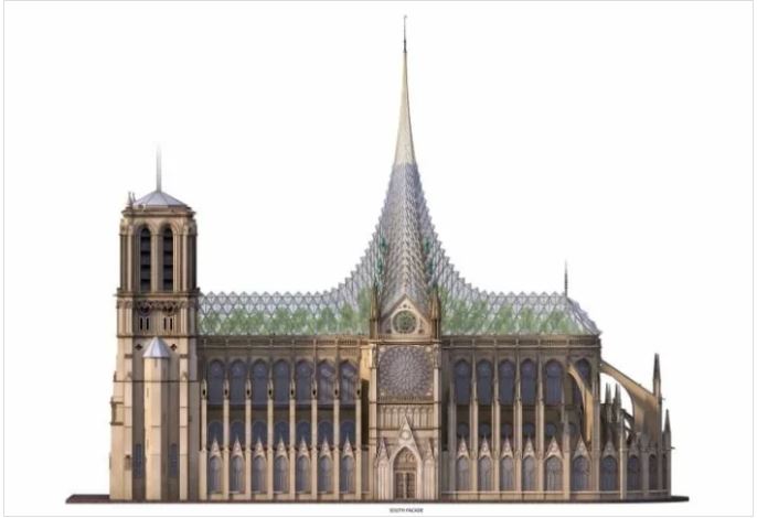 Архитекторы заявили, что крыша и шпиль будут вырабатывать электричество, тепло и энергию для вентиляции собора. Основная идея проекта - превращение Нотр-Дама в "здание с положительной энергией, производящее больше, чем потребляет". Авторы считают, что их дизайн сделает возрожденный собор новым лицом церкви в XXI веке.