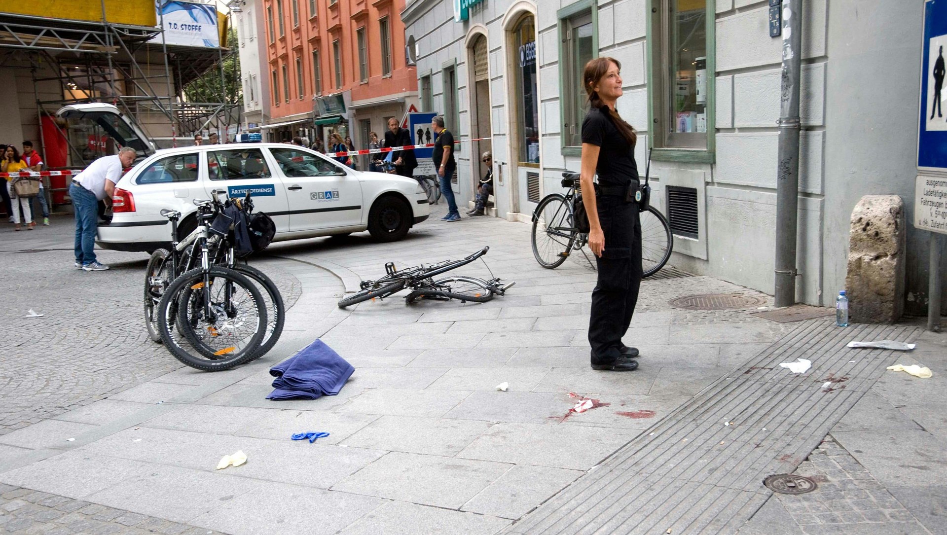 По информации полиции, мужчина, имя которого пока не называется, после ДТП накинулся на не успевших разбежаться граждан с ножом. Скорость движения машины, в которой находился злоумышленник, составляла не менее 100 километров в час. Мужчина сначала сбил велосипедиста, затем намеренно направил внедорожник на пешеходов, которые ожидали транспорт. Когда зеленый внедорожник остановился, водитель выскочил в толпу с ножом в руке. По информации телеканала ORF, позже водитель внедорожника сдался полиции сам, не оказывая сопротивления.