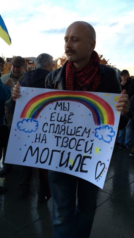 "Путин является главным спонсором войны на Украине и спонсором террористов. Мы выступаем против этого. Мы хотим остановить войну. Если бы не было оружия и наемников, то никакой войны в Донбассе бы не было", - заявил участник акции протестов Павел Литковский. По его словам, сам он родом из Украины, уже два года живет в столице Германии.