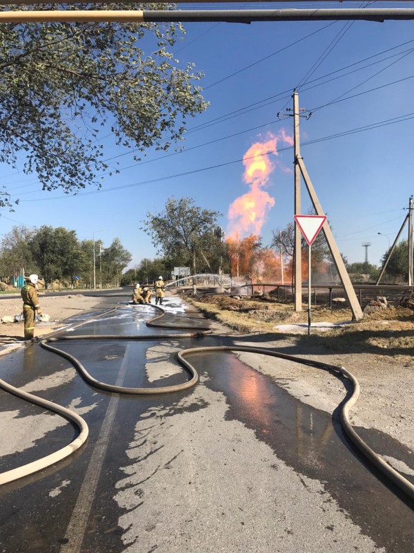 По данным пресс-службы, 30 августа в 16.34 по проспекту Тауке хана в городе Шымкент по неизвестной причине произошел разрыв подземного газопровода высокого давления диаметром 150 миллиметров, в результате чего произошло загорание трубопровода (высота пламени достигала 15 метров).