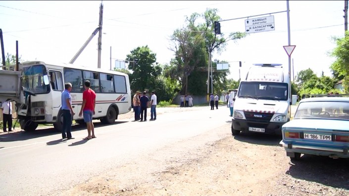 По рассказам очевидцев, автобус с пассажирами двигался по главной улице. КамАЗ ехал по второстепенной дороге. На перекрестке после недавнего ураганного ветра не работал светофор. После столкновения каретами скорой медицинской помощи в городскую больницу № 1 Тараза доставили 24 человека.