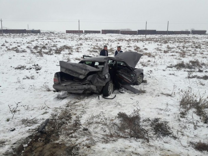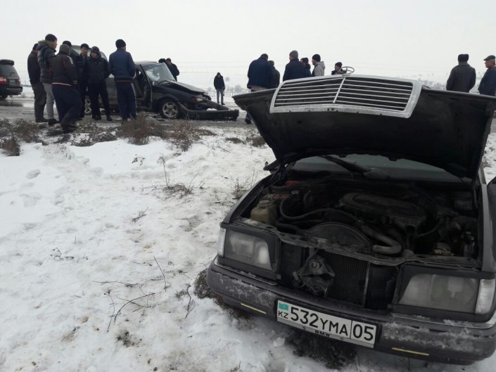 На дороге, ведущей из Шымкента в Ленгер, столкнулись автомобили Mercedes и Volkswagen Passat.
