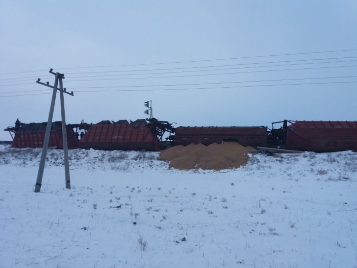 По данным ATPress.kz, грузовые вагоны предположительно перевозили зерно.