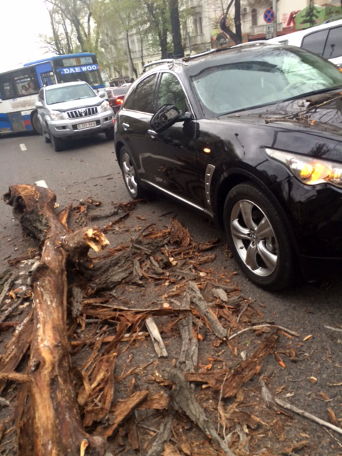 Аварийное дерево упало на автомашину Infiniti FX 35 жительницы Алматы Татьяны Лепуновой, передает корреспондент Tengrinews.kz. Инцидент произошел в конце апреля, однако девушка до сих пор не может добиться возмещения ущерба.