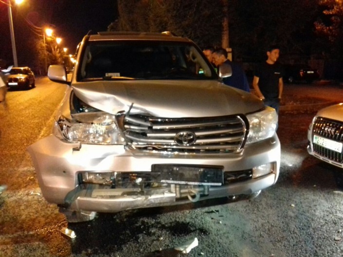 Авария произошла на пересечении улиц Акан Серы и Джапаридзе. Со слов очевидцев, водитель внедорожника двигался по Акан Серы в южном направлении и на полном ходу протаранил Daewoo Nexia. Сразу после этого водитель Toyota Land Cruiser скрылся с места происшествия.