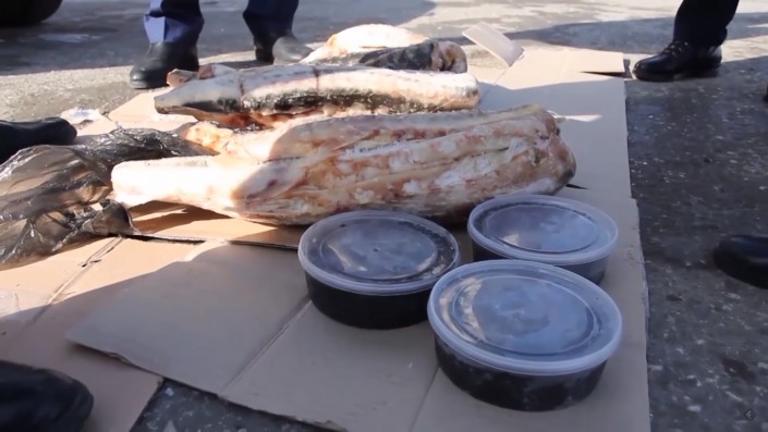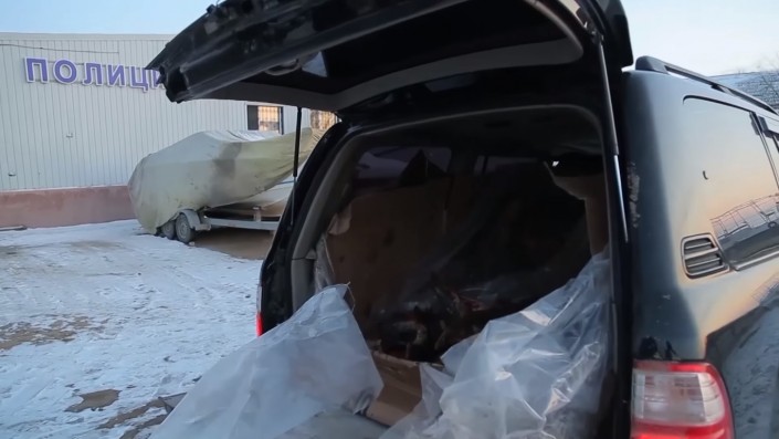 Атырауские полицейские задержали черный Lexus, набитый осетрами Кадр видео ДВД Атырауской области