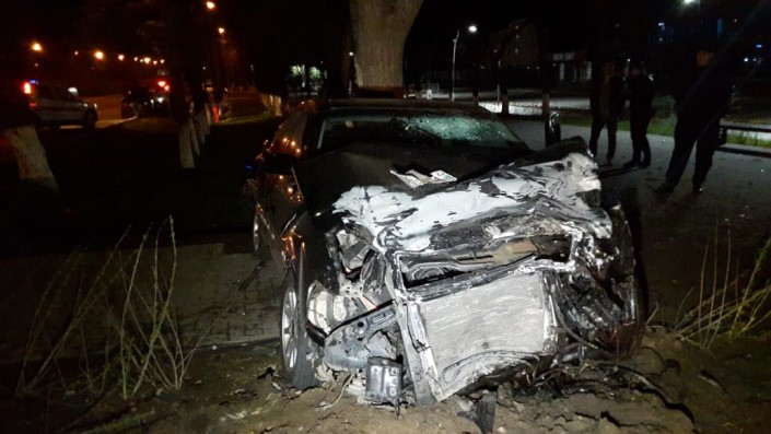 Со слов очевидцев, двигавшаяся в западном направлении по улице Толе би Audi ударила Mercedes, который проезжал на красный свет в северном направлении по улице Яссауи. От удара Mercedes откинуло, а Audi врезалась в дерево. Выяснением всех обстоятельств занимается полиция.
