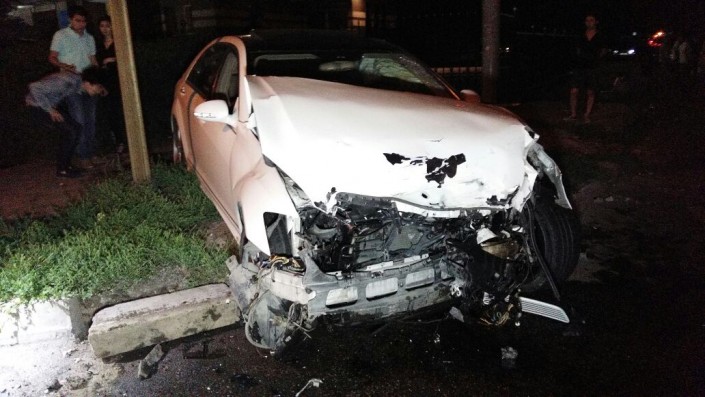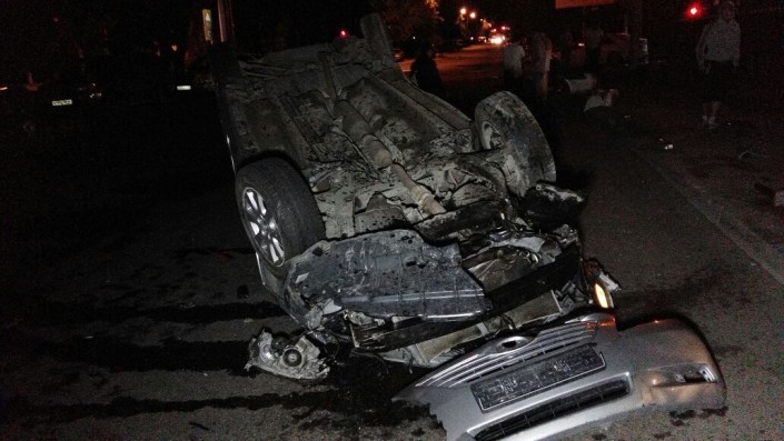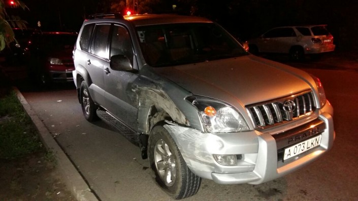 Тем временем по улице Карасай-батыра в западном направлении на высокой скорости двигалось авто марки Toyota Camry. Автомобиль проехал перекресток на красный сигнал светофора. В этот момент по улице Жарокова на юг ехал Mercedes-Benz. Он ударил Camry, которая по инерции "отлетела" в Prado и перевернулась.