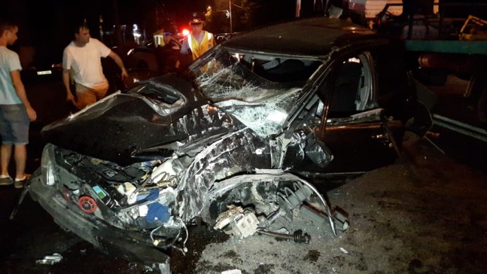 Инцидент произошел в ночь с 24 на 25 июня на проспекте Сейфуллина, не доезжая проспекта Жансугурова. По словам очевидцев, удар был настолько сильным, что динамик буфера вылетел из окна и разбил стекло магазина. Пострадавшие госпитализированы с различными травмами.