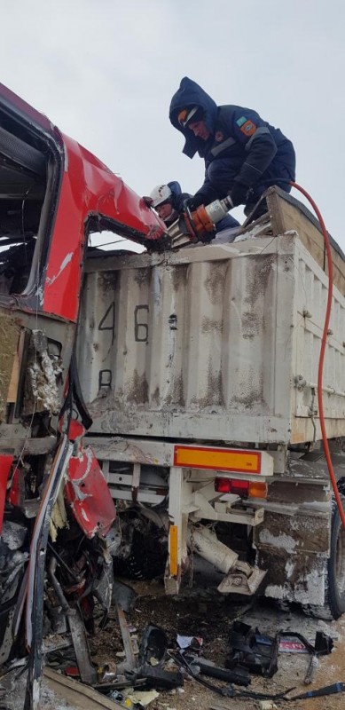 На месте дорожного происшествия спасательные операции выполняли пять сотрудников и одна единица техники оперативно-спасательного отряда ДЧС Карагандинской области, три работника и одна единица техники центра медицины катастроф.