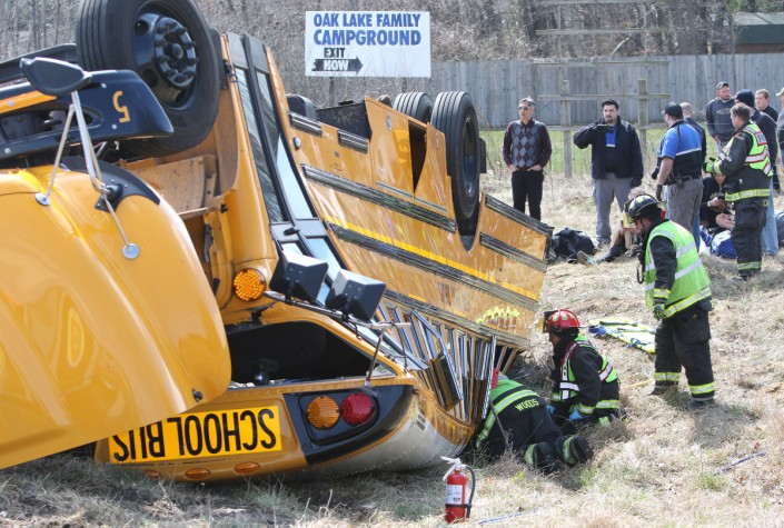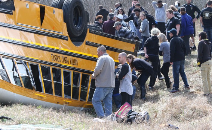 По данным правоохранителей, авария произошла после того, как автомобиль задел бок автобуса, в котором ехала баскетбольная школьная команда. Водитель автомобиля уронила емкость с напитком, попыталась поднять его, после чего потеряла контроль над машиной.
