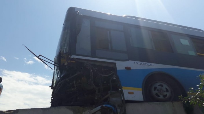 В Алматы автобус врезался в отбойник на мосту, сообщает корреспондент программы "Территория происшествий" на телеканале СТВ.