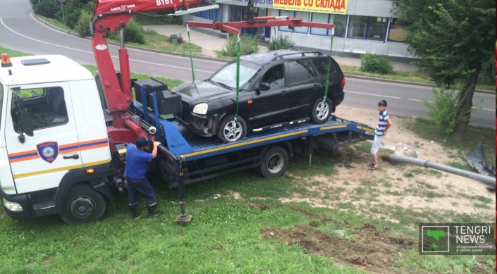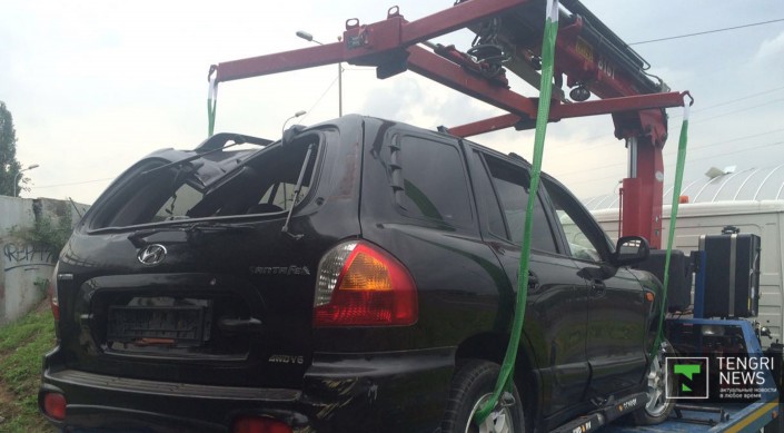 Автомобиль Hyundai Santa Fe двигался по Саина в северном направлении, выехал на развязку, пытаясь поехать на проспект Райымбека. Однако, по неизвестным причинам, снес ограждение и вылетел с развязки. По словам очевидцев, за рулем Hyundai находилась девушка. В настоящий момент автомобиль увезли на эвакуаторе, информации о состоянии водителя нет.