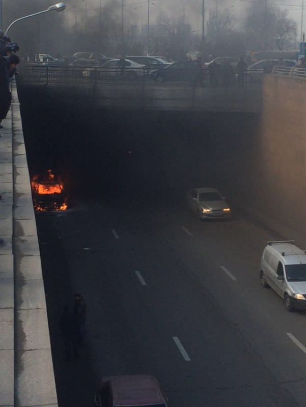 Как сообщили в ДЧС Алматы, информация о возгорании автомобиля поступила в 12.05 23 февраля. Сотрудники пожарной службы прибыли на место в 12.37 по причине пробок на дорогах. Ликвидировать пожар удалось в 12.59.