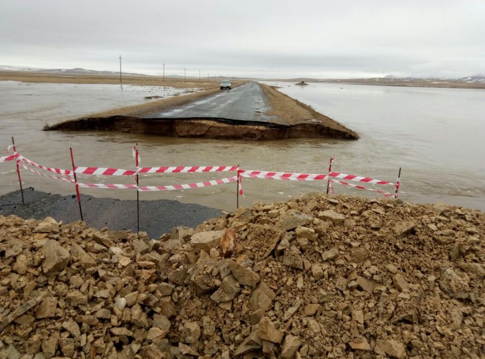 По информации акима Киргизского сельского округа Бауржана Копашева, размытый участок дороги огорожен, выставлены знаки и дежурит патруль.