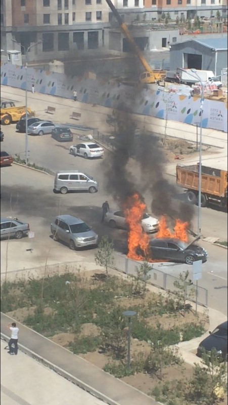 Как сообщают очевидцы, возгорание произошло по улице Кабанбай батыра. По их словам, автомобиль загорелся на ходу.