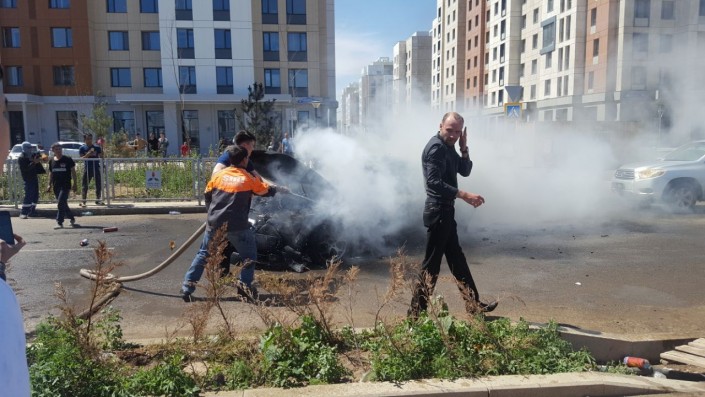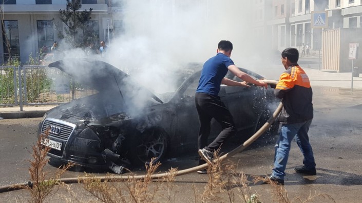 Официальный представитель КЧС МВД РК Руслан Иманкулов подтвердил сообщение о возгорании автомобиля. По его данным, вызов поступил в 14.21. В результате пожара сгорела автомашина марки Ауди А6, также частично пострадала рядом стоящая автомашина марки Toyota Highlander.