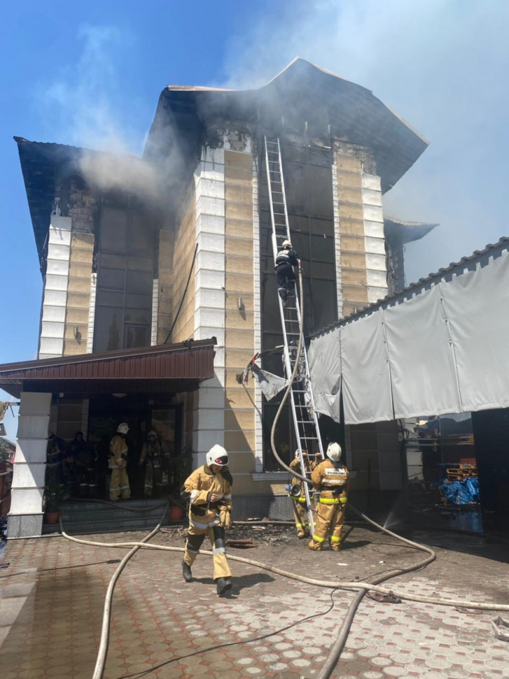 По данным ДЧС Алматы, в 13.50 силы и средства ДЧС выехали по повышенному рангу вызова по адресу микрорайон Горный гигант, улица Ахмедьярова, 20. По прибытии в 13.57 установлено, что открытым пламенем горела кровля одноэтажного здания автомойки и кафе и кровли примыкающего 3-этажного здания. Создалась угроза распространения пожара на близлежащие жилые дома.