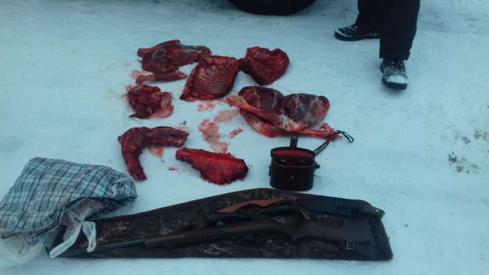 Как сообщается, сотрудник группы природоохранной полиции и участковый инспектор отделения местной полицейской службы задержали возле села Новый Быт жителя Петропавловска 1983 года рождения. При проверке в его автомашине Land Cruiser были обнаружены охотничье ружье марки ТОЗ-78-01 калибра 5,6 миллиметра, патроны, ножи и разделанная туша животного. Водитель на месте утверждал, что разделанное мясо - баранина, которую он везет для личного пользования.