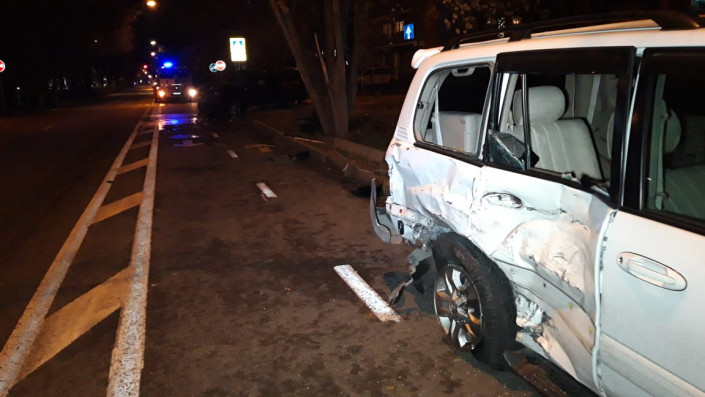 ДТП произошло на перекрестке улиц Шевченко и Байзакова. Со слов очевидцев, водитель белого внедорожника двигался в западном направлении по улице Шевченко. Land Cruiser черного цвета следовал по Байзакова в южном направлении, по невыясненным причинам проигнорировал знак "Уступи дорогу" и на перекрестке на полном ходу ударил в бок белый Land Cruiser, который после удара залетел на бордюр и врезался в дерево.