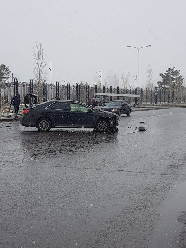 Bentley врезался в автобусную остановку в Нур-Султане после столкновения с автомобилем Toyota, передает Tengrinews.kz.