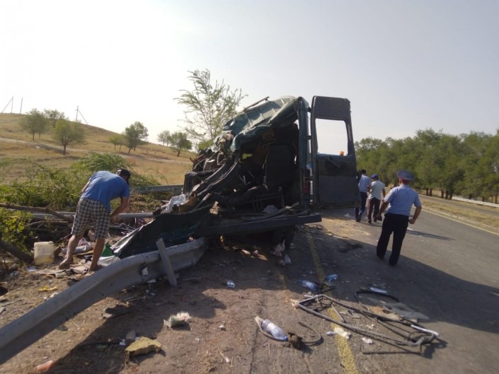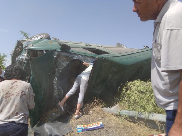Авария случилась днем 13 августа на трассе Алматы - Бишкек, в районе села Узынагаш. В момент инцидента в салоне микроавтобуса, который ехал из Тараза в Алматы, находились 17 пассажиров.