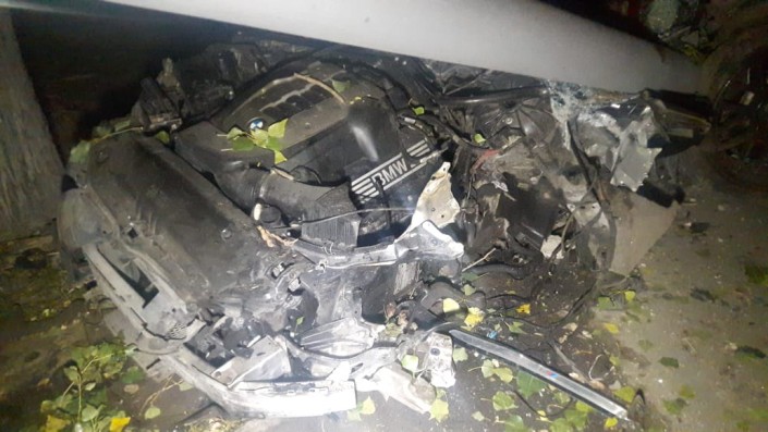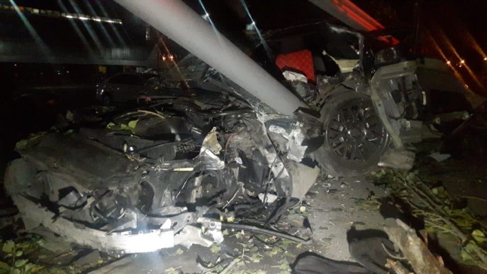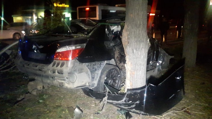 В груду металлолома превратилась автомашина BMW после столкновения со столбом уличного освещения и деревом в Алматы, передает корреспондент программы "Территория происшествий" на телеканале СТВ.