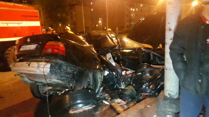 Автомобиль BMW, двигаясь на юг по Момышулы, на огромной скорости, не справившись с управлением, врезался в столб. В результате аварии пострадало три человека. Они были госпитализированы. Со слов очевидцев, у одного из травмированных оторвало ухо. Позже один из пострадавших скончался в больнице.