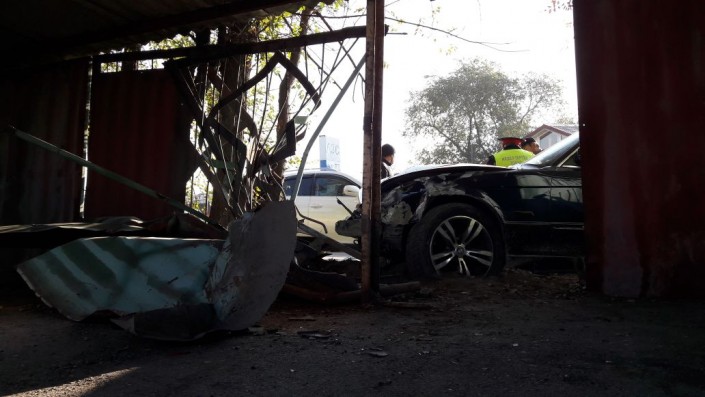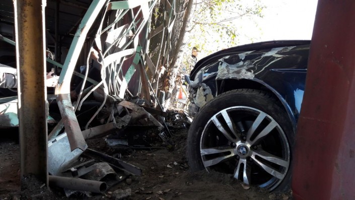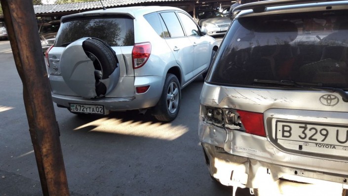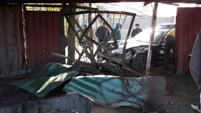 BMW врезалась в забор стоянки в Алматы: Пострадали три авто Фото программы "Территория происшествий"©