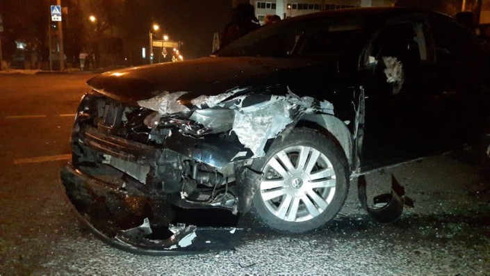 Авария произошла на пересечении улиц Жандосова и Манаса. По словам очевидцев, водитель Volkswagen двигался по Жандосова в восточном направлении на красный сигнал светофора. В этот момент водитель Audi двигался по Манаса на юг. Произошло столкновение. От удара Audi отлетел на обочину и снес светофор.