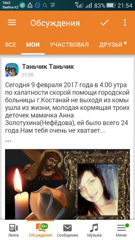 ЧП в Костанайской городской больнице - утром 9 февраля здесь скончалась 24-летняя мать троих детей Анна Золотухина. Читатели газеты "Костанайские новости" сообщили, что молодая женщина умерла, не выходя из комы, "по халатности врачей скорой помощи".