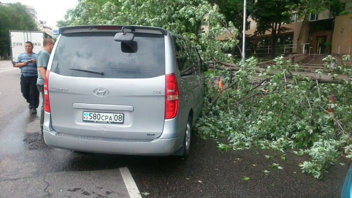 По данным корреспондента, инцидент произошел по улице Сатпаева между Фурманова и Достык. Автомобиль Hyundai ехал в восточном направлении. Затем водитель авто хотел припарковаться, и в этот момент на его машину упало дерево.
