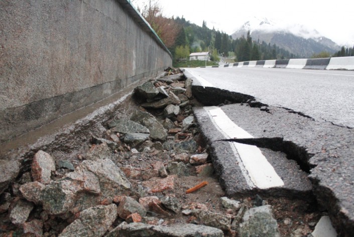В Алматы из-за проливных дождей размыло дорогу от катка "Медеу" до горнолыжного курорта "Шымбулак", сообщает корреспондент Tengrinews.kz.