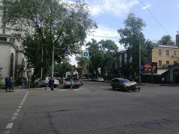 На перекрестке улиц Желтоксан и Курмангазы в Алматы произошла в авария с участием автомобилей Nissan Primera и Toyota Corolla, передает корреспондент Tengrinews.kz.