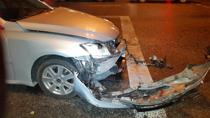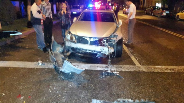 На пересечении улиц Фурманова и Богенбай батыра Lexus столкнулся с Audi, который в этот момент двигался в западном направлении по Богенбай батыра. От удара Audi сбил дерево и светофор. В результате аварии пострадал водитель Audi. Его госпитализировали в больницу.