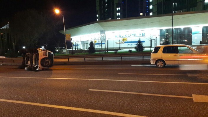 Еще одно ДТП примерно в это же время произошло по проспекту Аль-Фараби между улицами Сейфуллина и Желтоксан в Алматы. Авто марки Toyota Prado двигалось в восточном направлении по Аль-Фараби, и на затяжном повороте водитель не справился с управлением. В результате этого авто врезалось в бордюр и перевернулось. Пострадавших в данном ДТП нет.