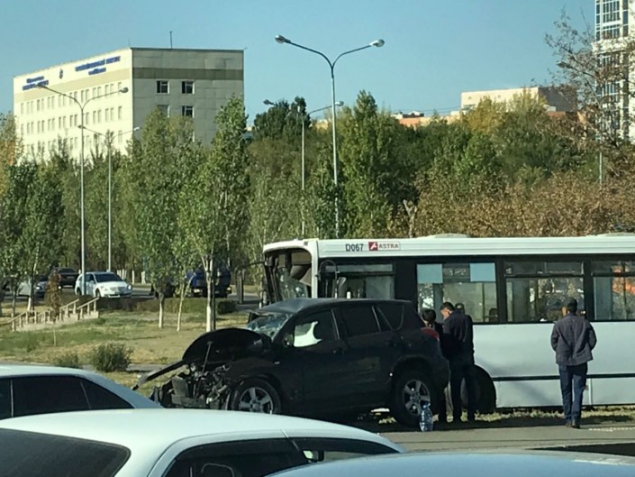 ДТП с участием автобуса и кроссовера произошло в Астане, передает Tengrinews.kz.