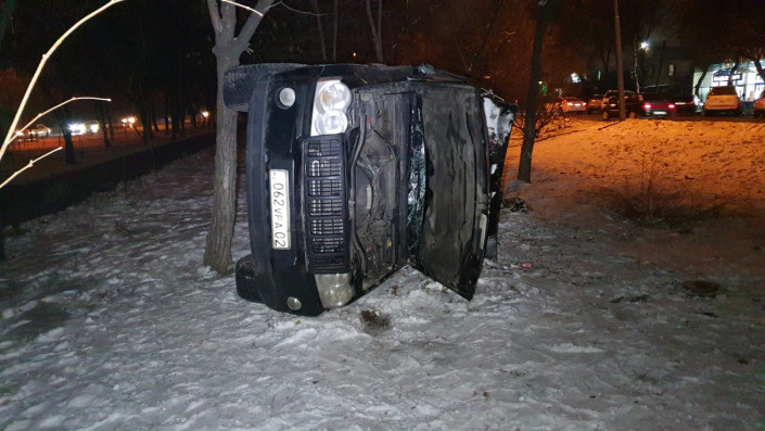 По словам водителя Jeep, он двигался по проспекту Райымбека в восточном направлении. После того как он переехал улицу Кудерина, в него якобы врезался неизвестный автомобиль. Владелец внедорожника потерял управление, залетел на бордюр и опрокинулся на бок.