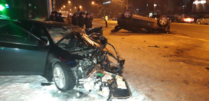Авария произошла на пересечении улиц Толе би и Байтурсынова. Со слов очевидцев, Toyota двигалась по Толе би в восточном направлении. На перекрестке ехавшая впереди неустановленная машина резко повернула налево. Водитель внедорожника Audi, двигавшийся на запад по Толе би, во избежание столкновения выехал на полосу встречного движения и врезался в Toyota. От удара Audi опрокинулся на крышу.