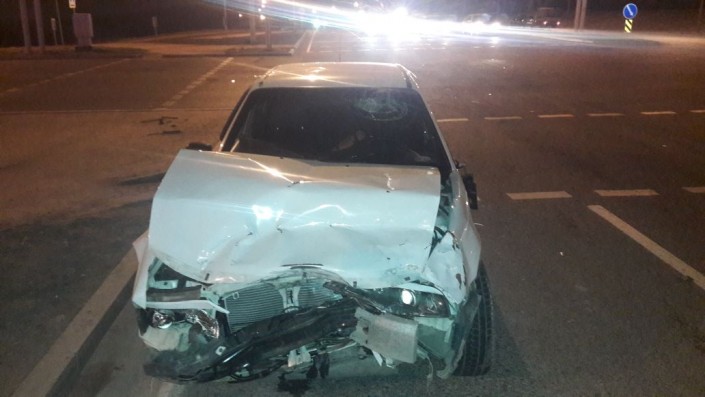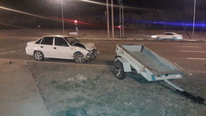На пересечении улиц Момышулы и Жана жол столкнулись Toyota Land Cruiser и Daewoo Nexia. По словам очевидцев, внедорожник с прицепом двигался в южном направлении по Момышулы и готовился совершить левый поворот. В этот момент в него на полном ходу врезалась Daewoo Nexia, которая двигалась на север по Момышулы.