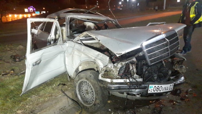 Инцидент произошел на пересечении проспекта Аль-Фараби и улицы Жарокова. Со слов очевидцев, водитель Mercedes двигался по Жарокова в южном направлении и по невыясненным причинам не справился с управлением. После этого он снес дорожный знак и несколько раз перевернулся. В результате этого два человека с различными травмами госпитализированы.