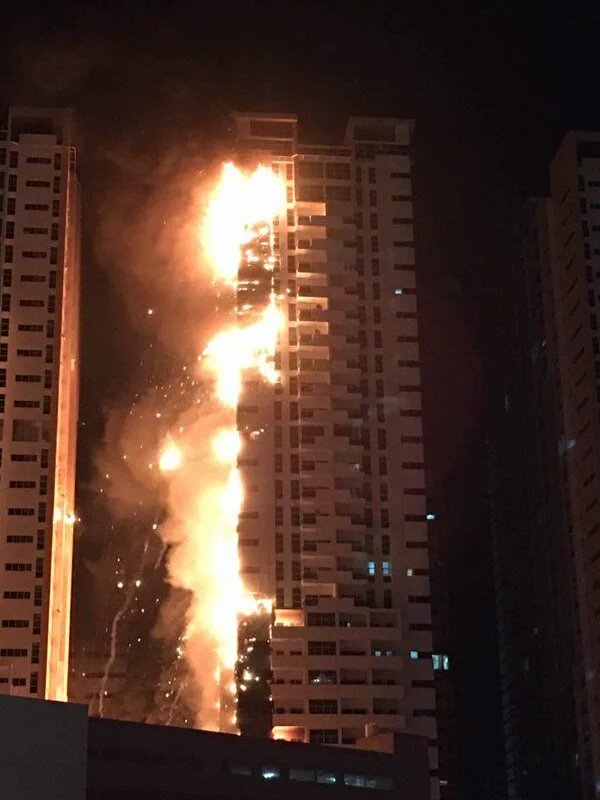 По данным портала, загорелся жилой комплекс Ajman One, состоящий из 12 высотных зданий. Сигнал о возгорании поступил около 21.45 по местному времени. Огнем охвачены уже два небоскреба. Жители зданий эвакуированы. Зарево с места происшествия в ночи видно на расстоянии нескольких километров.