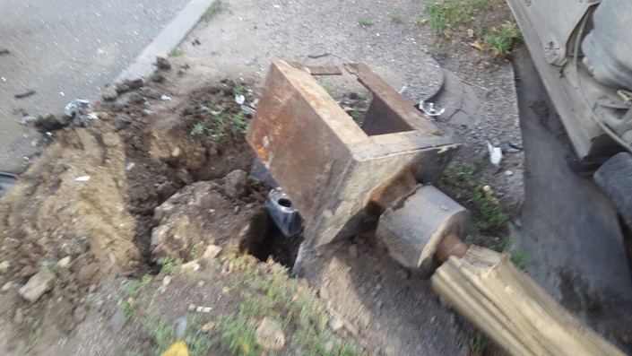 От удара такси закрутило, оно задело Subaru Forester, после чего снесло светофор и опрокинулось в арык.