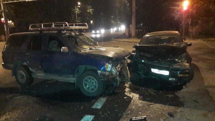 ДТП произошло на пересечении улиц Желтоксан и Маметовой. Со слов очевидцев, автомашина Toyota Camry 10 двигалась в восточном направлении по улице Маметовой. При повороте на улицу Желтоксан машина столкнулась с автомобилем Toyota Surf, который ехал в западном направлении по Маметовой.