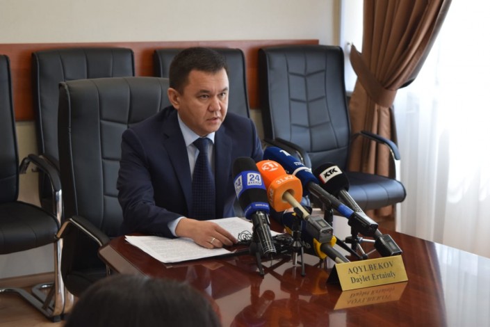 Руководитель Департамента экономических расследований Алматы Даулет Акылбеков на брифинге