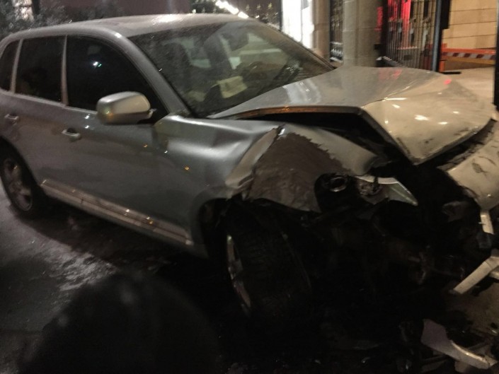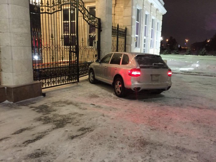 Фотографии врезавшегося в ворота Акорды автомобиля Porsche Cayenne рассылают казахстанцы в мессенджерах, передает Tengrinews.kz.